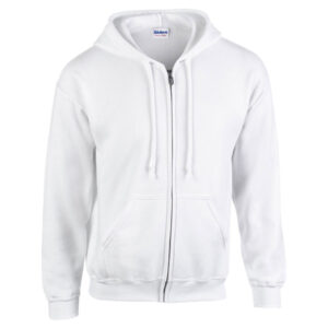50% cotton / 50% polyester sweatshirt with hood, metal zipper and front pockets, 271 g/m² (white 257 g/m²). Gildan brand product.